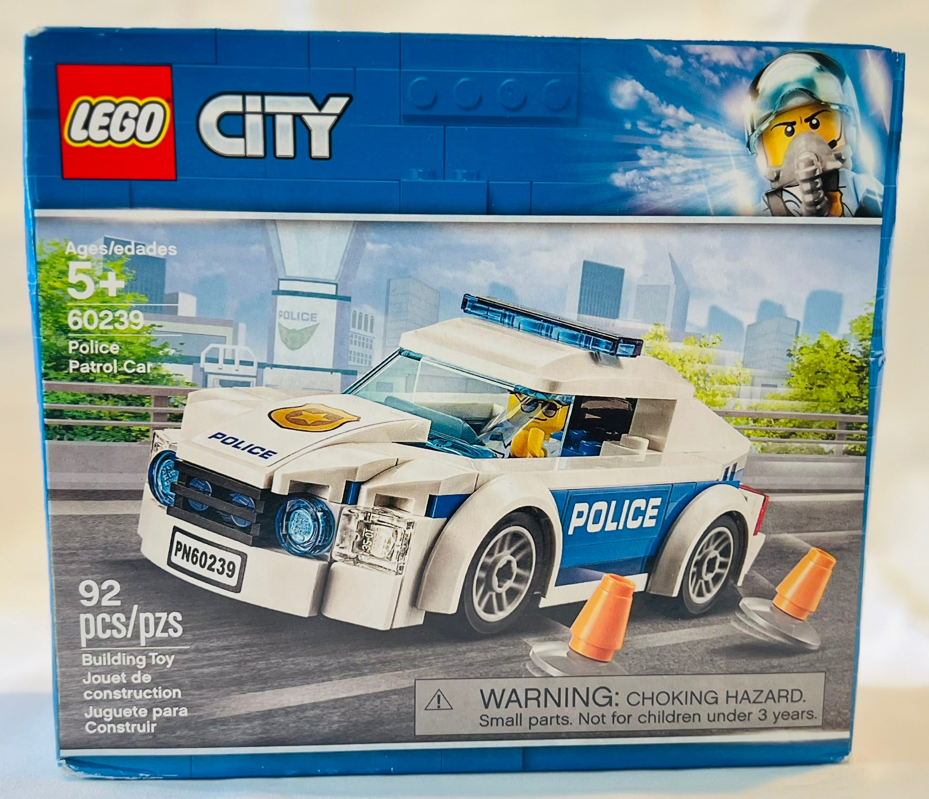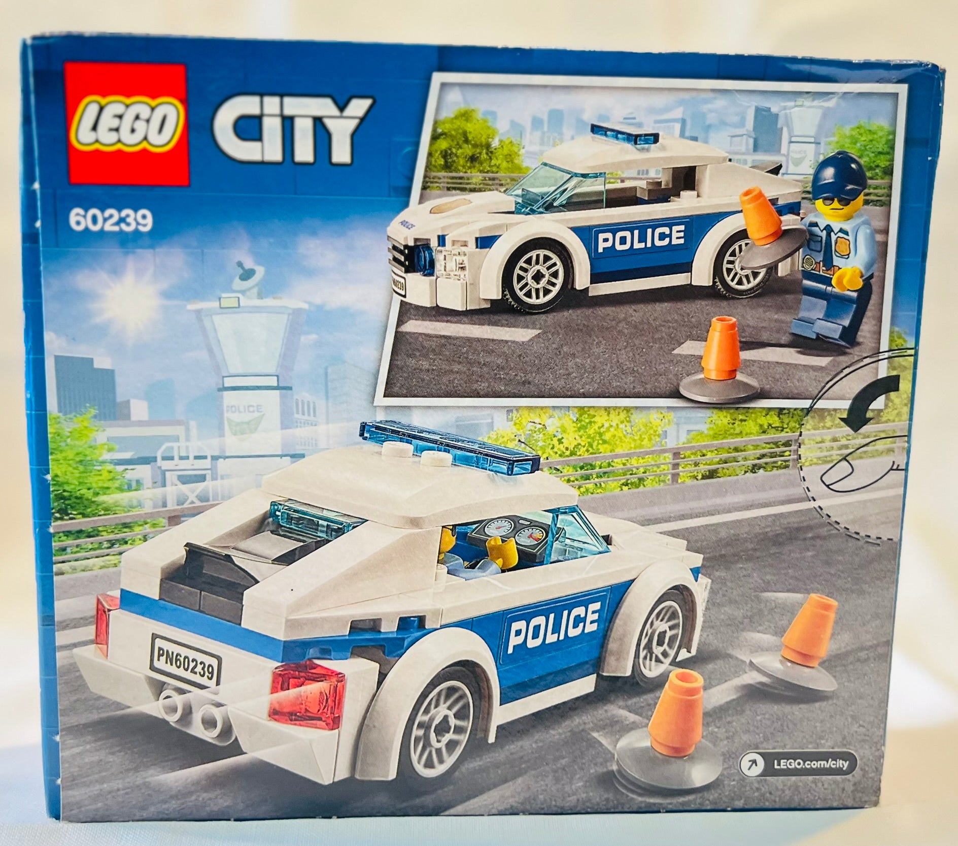 LEGO 60239 Police Patrol Car was a 92 piece City set with 1 minifig released in 2019. It features a police car with a removable roof, minifigure cab, and iconic decorations, plus a police officer minifigure and two traffic cones.