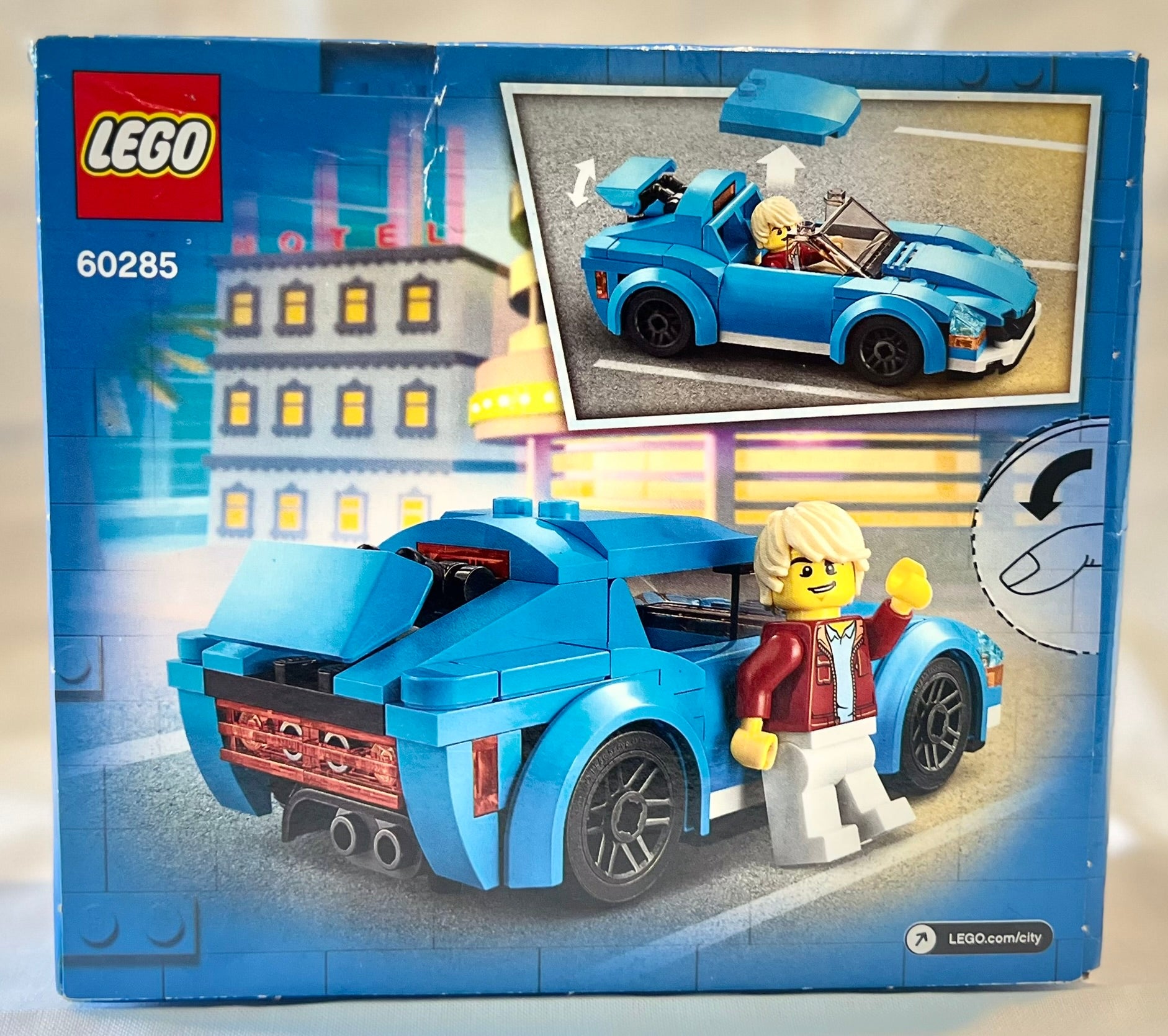 LEGO 60285 Sports Car was a 89 piece City set with 1 minifig released in 2021. It features a sports car with aerodynamic bodywork, a removable roof, adjustable rear spoiler, black rims, ground-gripping tires, and a detailed cockpit.