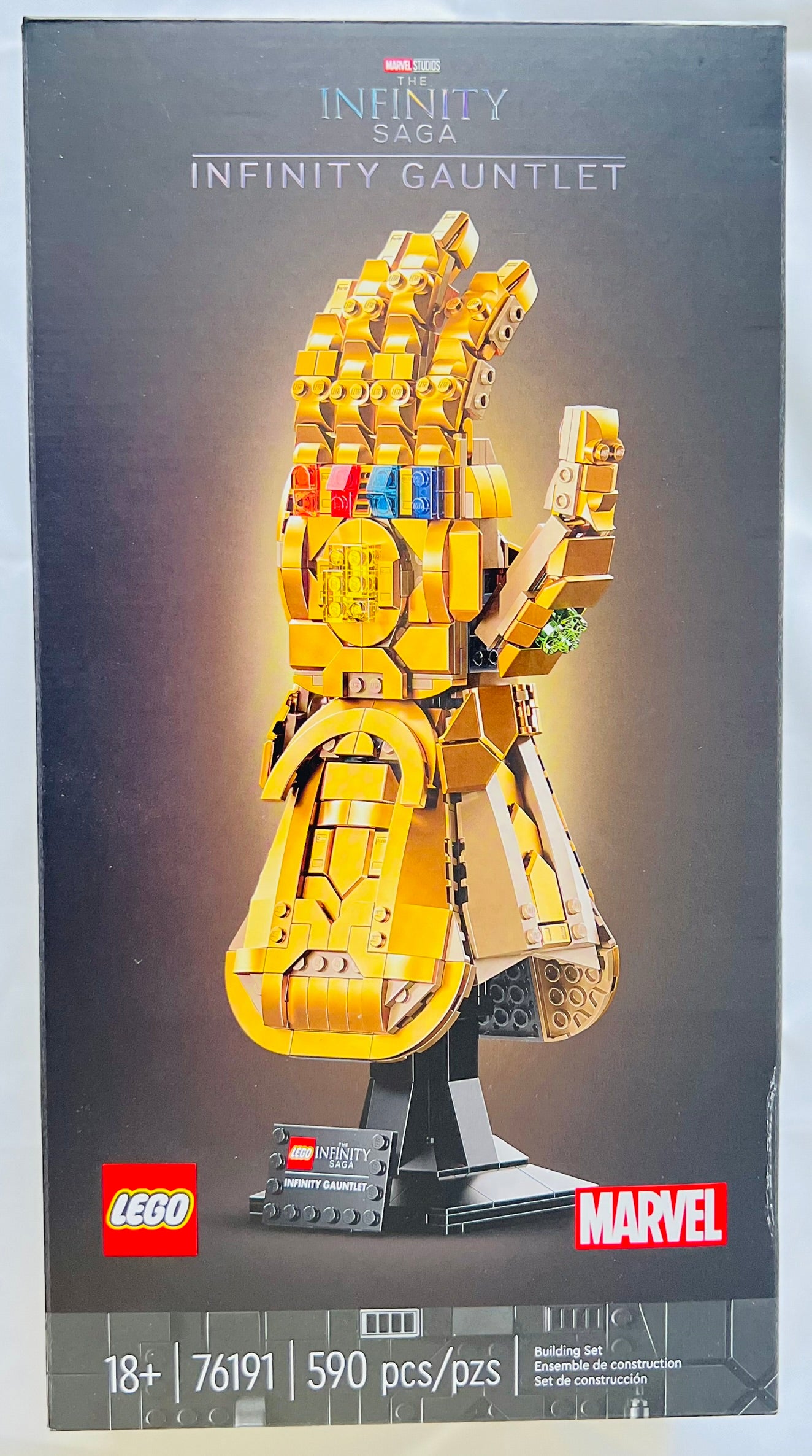 LEGO 76191 Infinity Gauntlet is a 590 piece Marvel Super Heroes set released in 2021. It is a LEGO brick version of the Infinity Gauntlet featured in the Marvel Studios’ Avengers: Infinity War and Avengers: Endgame movies.