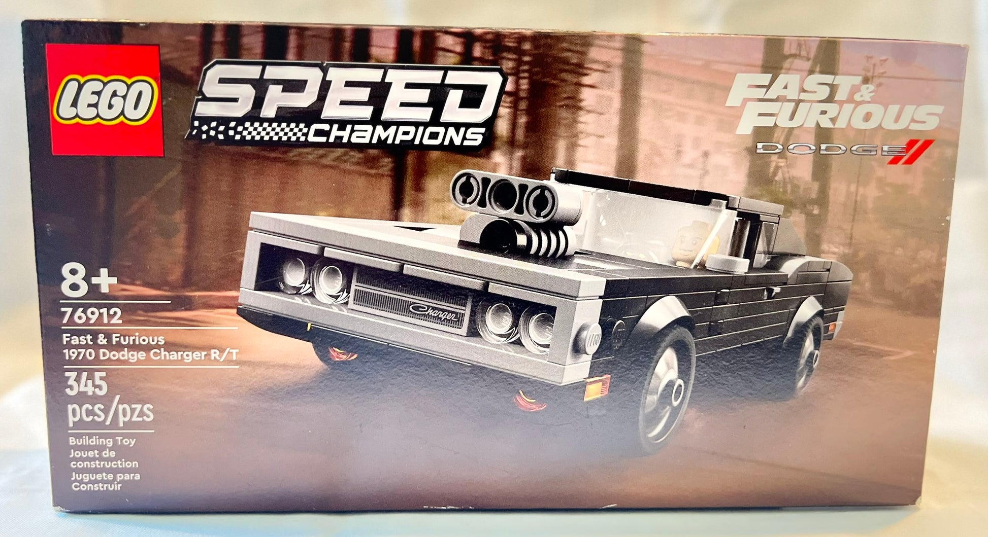 LEGO 76912 Fast & Furious 1970 Dodge Charger R/T was a 345 piece Speed Champions set with 1 minifig released in 2022. It includes a Dominic Toretto minifigure. Inside the car, you’ll find hints at the car’s movie connection, including a nitrous tank and a roll cage in the back.