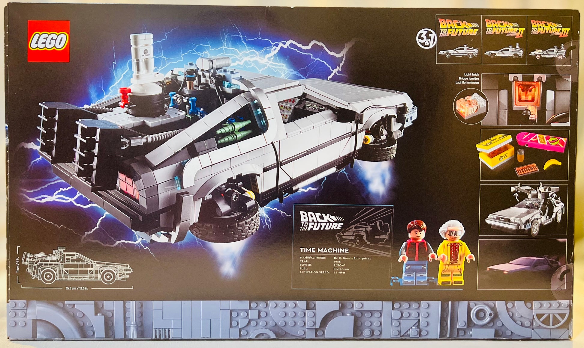 The LEGO DeLorean also features Doc and Marty McFly LEGO minifigures and fun accessories like a hoverboard, banana and a soda can. Pay homage to the popular film trilogy with the included information plaque; this LEGO car set for adults makes an amazing piece of home decor!